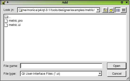 Click Project|Add File to invoke the Add dialog. Use this dialog to add files to the current project.