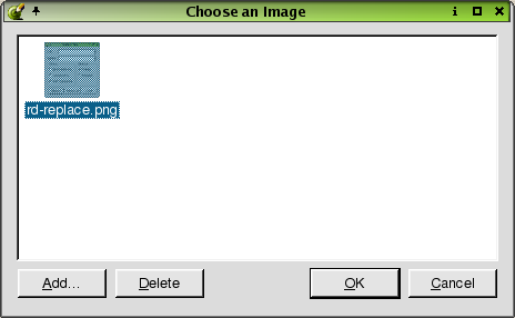 To choose an image from the listbox, click the image and then click OK. To add an image, click the Add button to invoke the Choose Images... Dialog. To delete an image, click the image in the listbox and then click the Delete button.