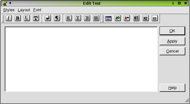 Use this dialog to apply HTML formatting to your text using the format toolbars and menus.