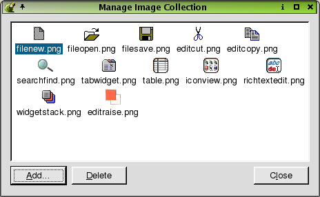 Changes made to the image collection are applied immediately. Click the Close button to leave the dialog.