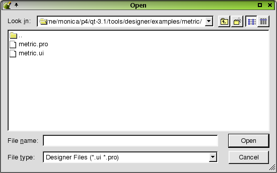 Click Open to open the selected file. Click Cancel to leave the dialog without opening a file.