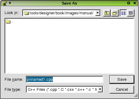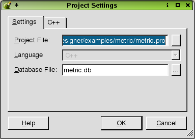 Click C++ Project to start a new project. This option invokes the Project Settings Dialog. C++ projects are saved as .pro files, which include the information Qt Designer needs to manage projects. When you add a form to your project in Qt Designer, it is automatically added to the FORMS section of the project file. The .pro file contains the list of forms (.ui files) used in the project. Qt Designer reads and writes .ui files, e.g. form.ui. The uic (user interface compiler) creates both a header file, e.g. form.h, and an implementation file, e.g. form.cpp, from the .ui file.