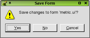 The Save Form message is invoked in several ways. One way is to click File|Close for a form that has never been saved, or has been saved previously but has had changes made to it. The dialog is also invoked by clicking File|Exit for a form that has never been saved, or has been saved previously but has had changes made to it. The dialog displays 'Save Changes to the Form?'. Click Yes to save the form. If the form has not been previously saved, the Save Form As Dialog is invoked. Click No to close the form without saving any changes or without saving the form if it has not been saved previously. Click Cancel to leave the dialog without closing or exiting the form and without saving the form.