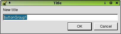 The Title dialog is invoked by right-clicking the following widgets: ButtonGroup and GroupBox and selecting Edit Title.