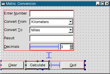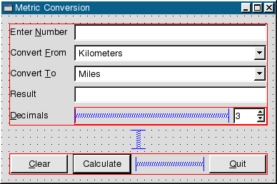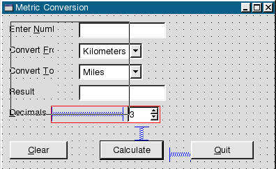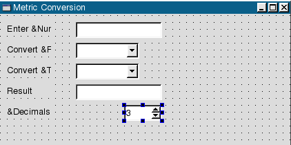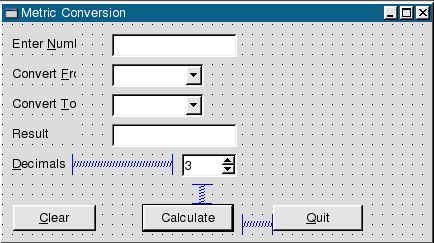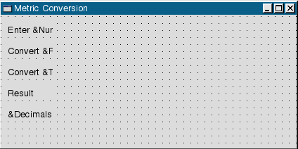 Change the form's name (in the Property Editor) to "ConversionForm", and change its caption to "Metric Conversion".