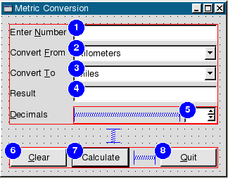 This chapter provides a quick start for users of Qt Designer. The chapter takes you step-by-step through the creation of a small dialog-style metric conversion application. It introduces many of the common tasks users perform when creating an application: adding widgets to a form, setting widget properties, making connections between signals and slots, laying out widgets, and adding custom code. This chapter only covers a proportion of Qt Designer's functionality; explanations and details are mostly left for the more detailed colortool tutorial presented in chapters two and three.