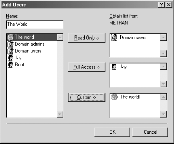 If you would like more information on how Windows NT uses domain usernames and groups, we recommend Eric Pearce's Windows NT in a Nutshell, published by O'Reilly.