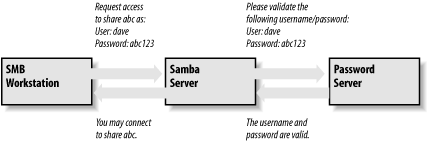 One of Samba's most complicated tasks lies in reconciling the security models of Unix and Windows systems. Samba must identify users by associating them with valid usernames and groups, authenticate them by checking their passwords, then control their access to resources by comparing their access rights to the permissions on files and directories. These are complex topics on their own, and it doesn't help that there are three different operating system types to deal with (Unix, Windows 95/98/Me, and Windows NT/2000/XP) and that Samba supports multiple methods of handling user authentication.