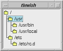 As evident from program 4-2, all entries who entry-path does not contain a separator character are top-level entries. The only exception is the separator character itself is also a toplevel entry. This makes it easy to display Unix file and directory names inside the HList widget, as shown in program 4-4.